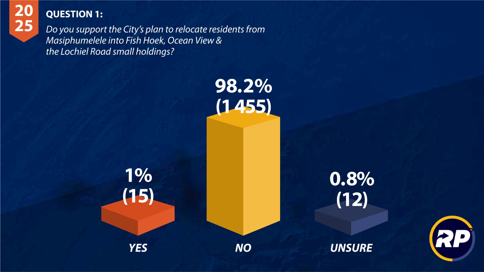 The Referendum Party (RP) is pleased to announce the results of its first community poll, conducted to gauge local opinion in Cape Town’s Deep South communities on the City’s proposed relocation and housing projects.